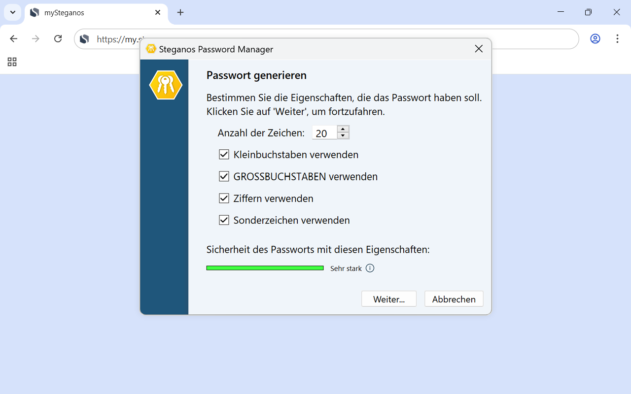 Die Steganos Passwort-Manager Browser-Plugins bieten komfortable Autofill- und Passwort-Generierungsfunktionen.Account-Assistent